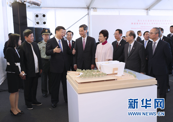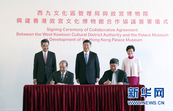 在香港特別行政區行政長官梁振英、候任行政長官林鄭月娥陪同下,習近平見證了香港特區政府政務司司長兼西九文化區管理局董事局主席張建宗與故宮博物院院長單霽翔簽署《興建香港故宮文化博物館合作協議》。