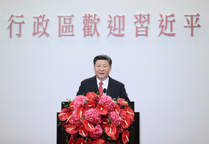 6月30日晚,國家主席習近平出席香港特別行政區政府歡迎晚宴並發表重要講話。(新華社記者 蘭紅光 攝)