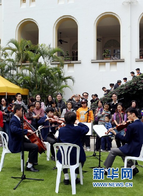 3月16日,香港一所學校的樂團在香港禮賓府為觀眾演奏。當日,香港特區行政長官官邸——禮賓府向公眾開放。公眾進入禮賓府的花園觀賞花卉樹木,參觀行政長官在禮賓府舉行官方活動和接待賓客的地方。地處港島中環的禮賓府落成於1855年,港英時期是港督官邸,先後曾有25位港督在此居住辦公。1997年香港回歸後,這裏成為特區政府接待來訪政要的重要場所,並於1999年更名「禮賓府」。禮賓府目前被列為香港法定古跡,每年春秋兩季各向市民開放一次。新華社記者李鵬攝