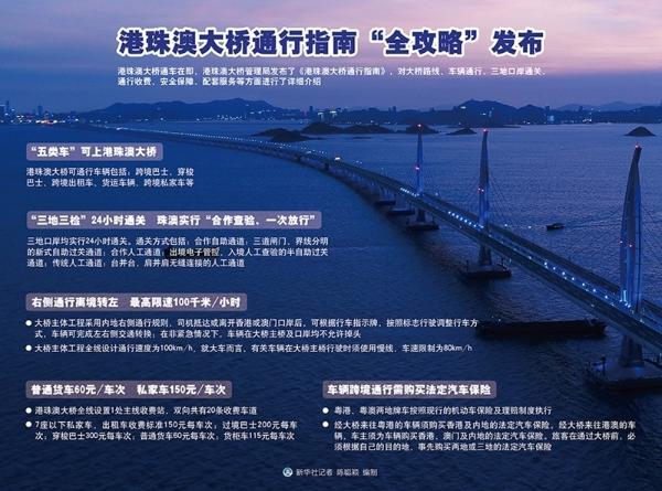 港珠澳大橋通車在即,港珠澳大橋管理局發布了《港珠澳大橋通行指南》,對大橋路線、車輛通行、三地口岸通關、通行收費、安全保障、配套服務等方面進行了詳細介紹。