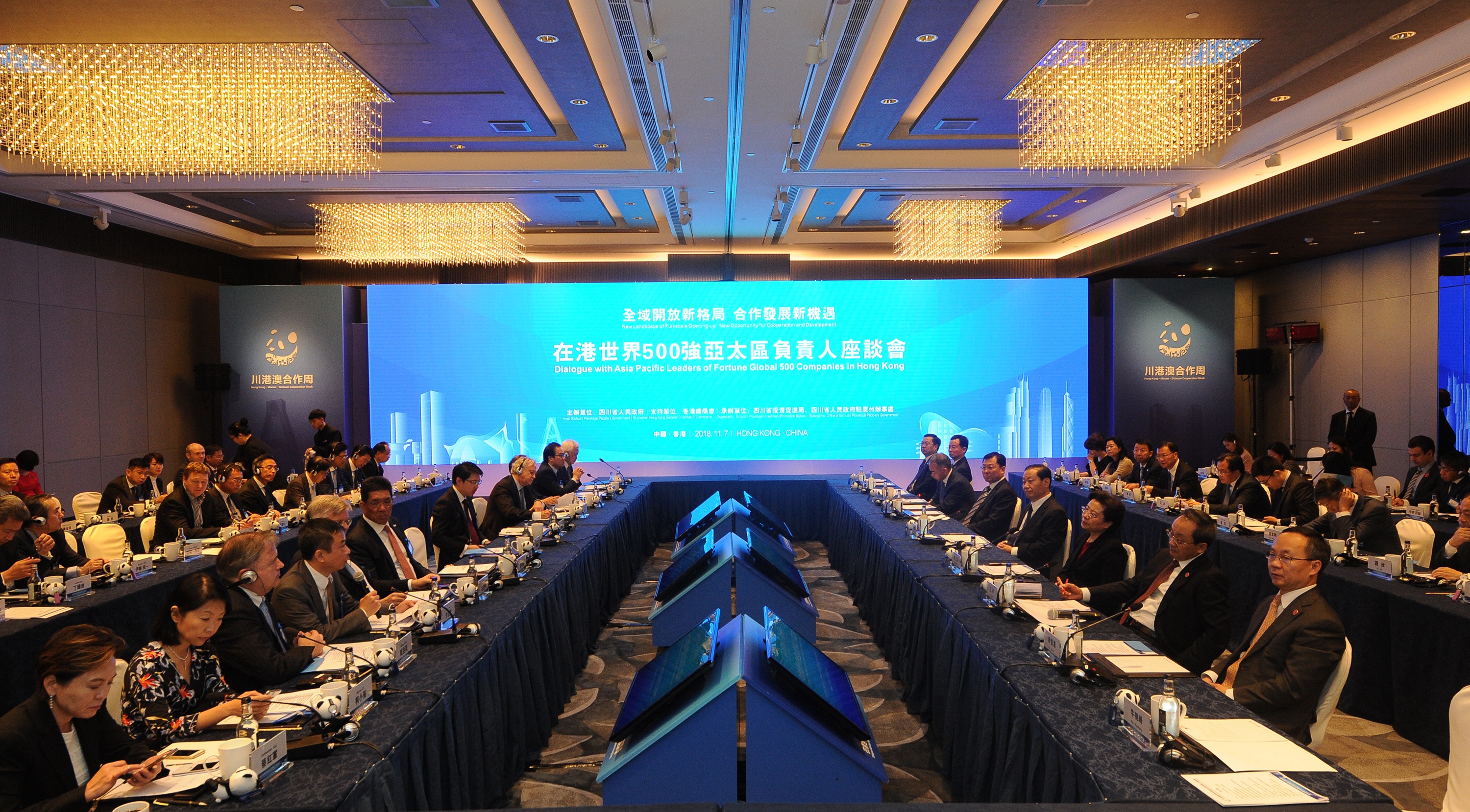 本網訊 11月7日,我辦副主任仇鴻應邀出席四川省政府舉辦的「在港世界500強亞太區負責人座談會」並致辭。四川省委書記彭清華、外交部駐港特派員公署特派員謝鋒、特區政府商務及經濟發展局局長邱騰華,在港世界500強企業和有關商協會負責人等約100人出席會議。