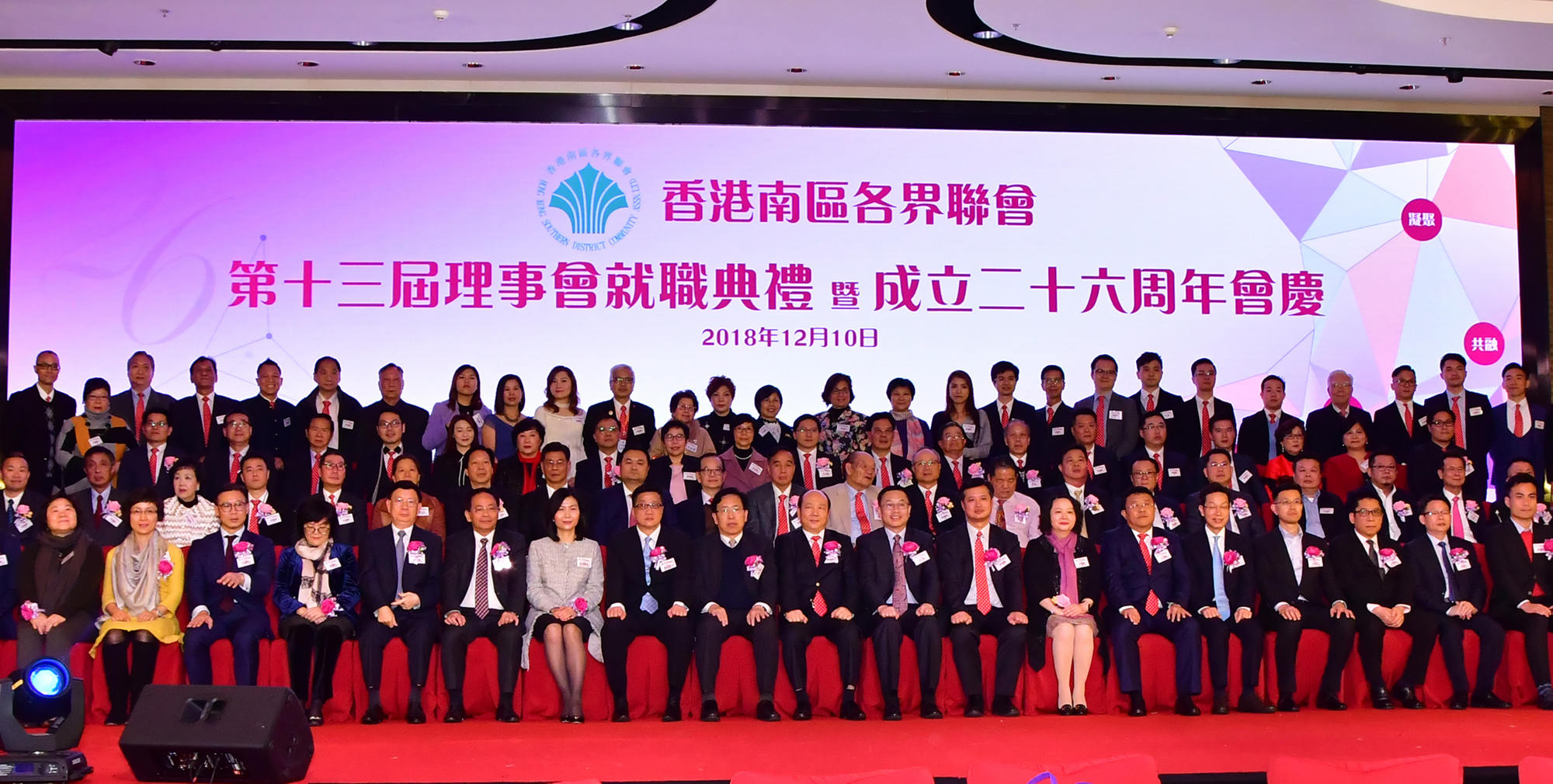 本網訊 12月10日,香港南區各界聯會舉行第13屆理事會就職典禮暨成立26周年會慶。我辦副主任何靖應邀出席,並與廣東省委統戰部副部長李煥春、特區政府民政事務局副局長陳積志等共同主禮。南區各界人士近800人參加。