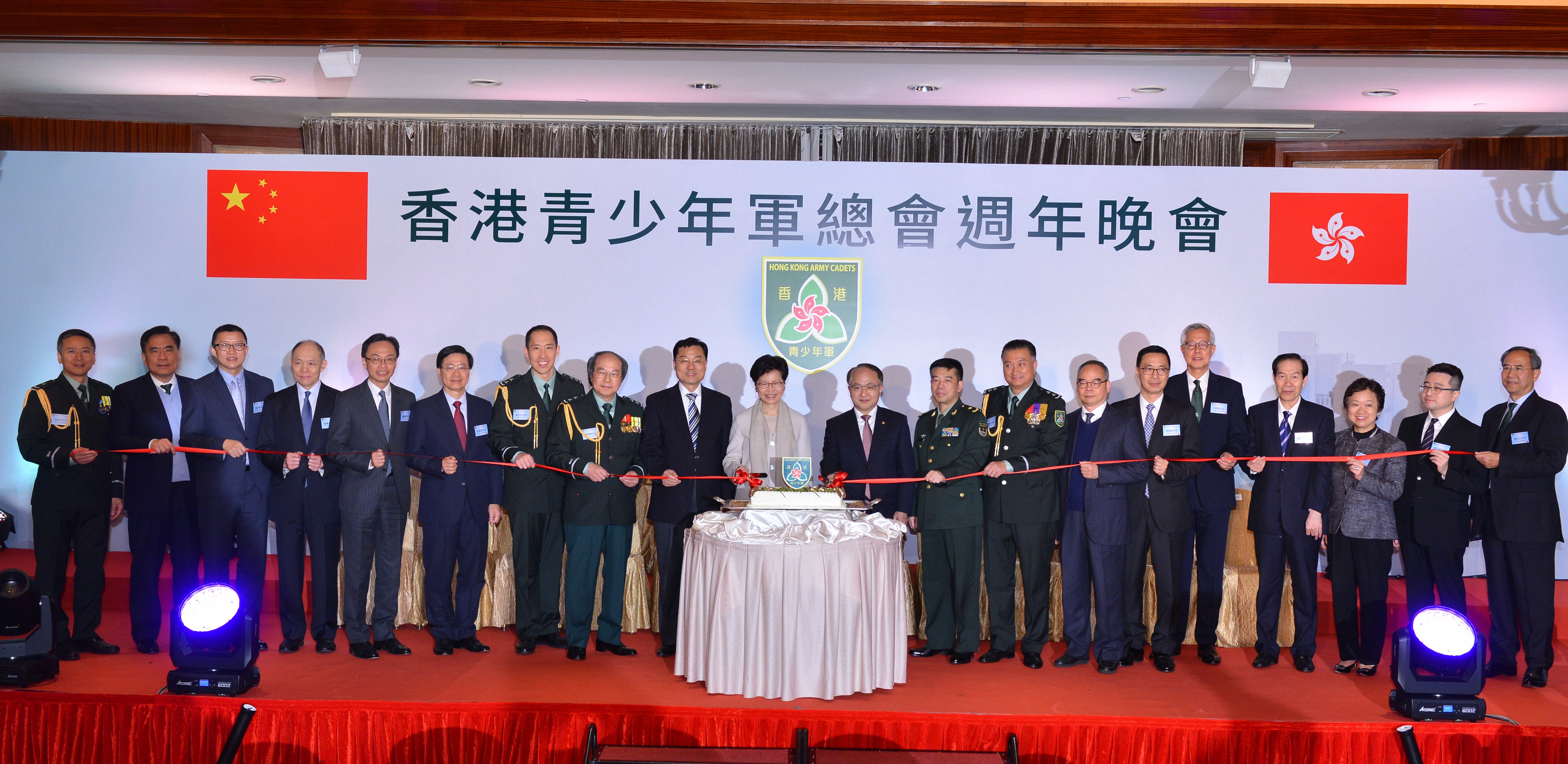 本網訊 1月4日晚,香港青少年軍總會四週年會慶晚會在港麗酒店舉行,我辦主任王志民應邀出席,並和香港特區行政長官林鄭月娥、外交部駐港公署特派員謝鋒、解放軍駐港部隊副司令員田永江等一同主禮。香港青少年軍總會會長戴德豐、主席陳振彬、總監黃永光等社團領袖和青少年軍會員以及各界嘉賓300餘人參加。青少年軍會員和香港大學生軍事生活體驗營的學員現場為嘉賓表演了軍體拳、器樂表演等精彩節目。