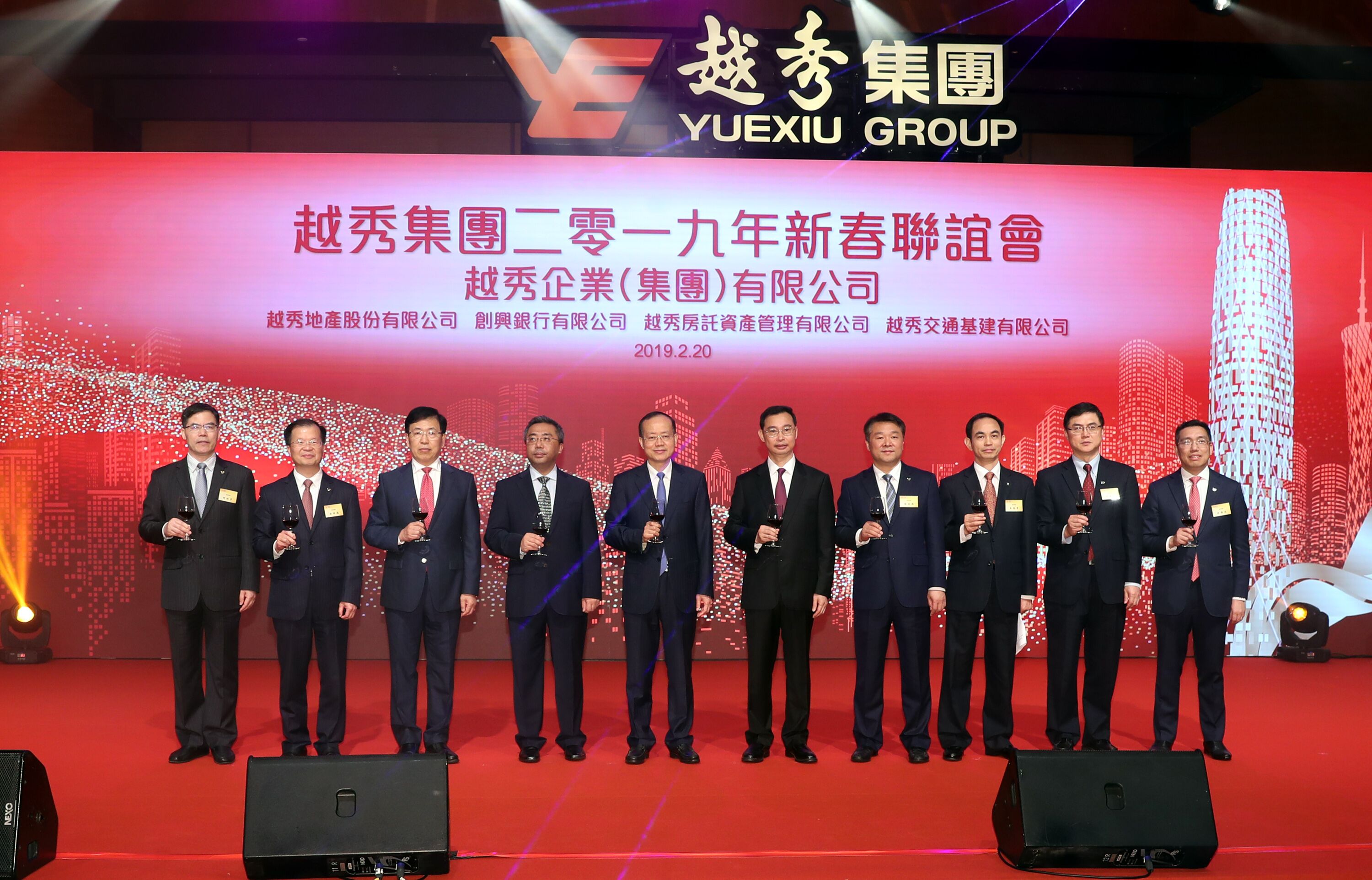 本網訊 2月20日晚,我辦副主任楊健應邀出席越秀集團2019年新春酒會,並與廣州市市長溫國輝、外交部駐港特派員公署副特派員楊義瑞、越秀集團董事長張招興等共同主禮。香港各界約600名嘉賓出席活動。