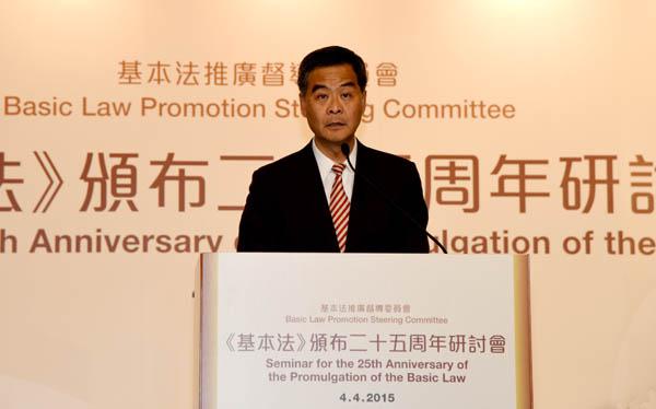 行政長官梁振英發表「基本法的起草、憲制地位與落實」主題演講