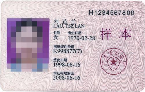港澳居民來往內地通行證(成人)樣式