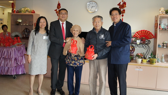 本網訊 2月25日下午,中央政府駐港聯絡辦主任張曉明探訪東華三院余振強紀念護理安老院,了解香港慈善機構提供養老護理服務的情況,看望住院長者,向他們拜年,並派送「福袋」。