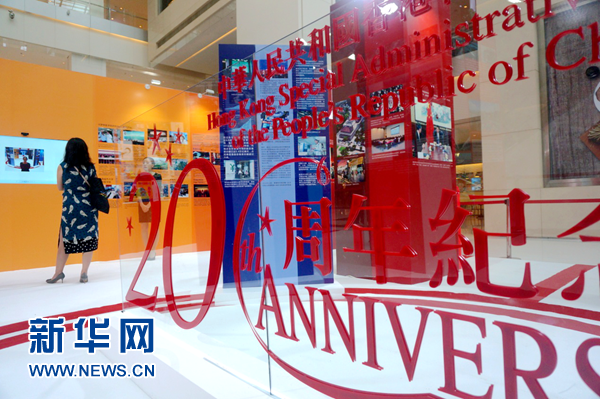 14日下午,「香港回歸祖國二十周年——同心創前路 掌握新機遇」成就展天津巡迴展舉行開幕典禮。圖為展覽現場。(新華網 李雪姣 攝)