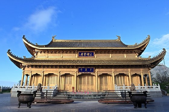 金殿指金頂華藏寺中的一殿,屋頂鎏金,是目前全國最大的金殿。