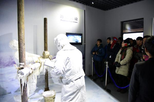 731部隊進行活人凍傷實驗模擬像。(圖片來源:中央政府駐港聯絡辦)